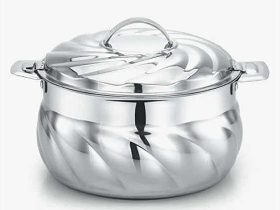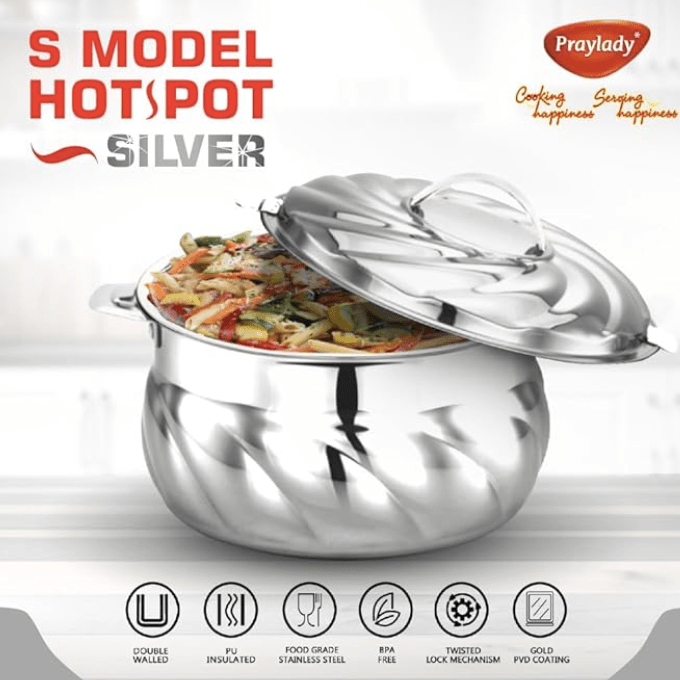 பிரேலேடி எஸ்-மாடல் ஹாட்பாட் ப்ளைன் சில்வர் | சிறந்த தோற்றத்தை அளிக்கும் எக்ஸோடிக் டிசைன் | ஸ்டீல் மூடியுடன் கூடிய இன்சுலேட்டட் ஸ்டெயின்லெஸ் ஸ்டீல் கேசரோல் | ஹாட் பாட் சர்விங் கேசரோல்கள்/சப்பாத்தி பாக்ஸ்/ஹாட் கேஸ் (3500 மிலி)