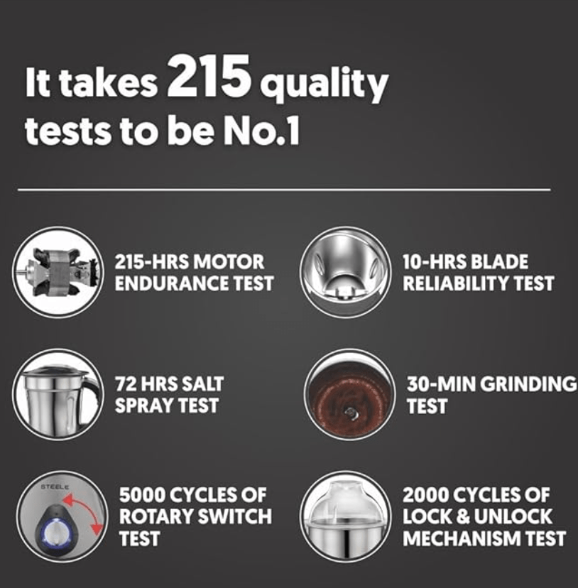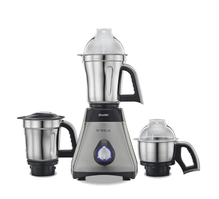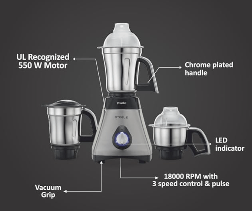 ப்ரீத்தி ஸ்டீல் 110 V, MG-206, 550 வாட், 3 ஜாடிகள், டர்போவென்ட் தொழில்நுட்பம், 2 வருட தயாரிப்பு உத்தரவாதம் (வெள்ளி/கருப்பு)