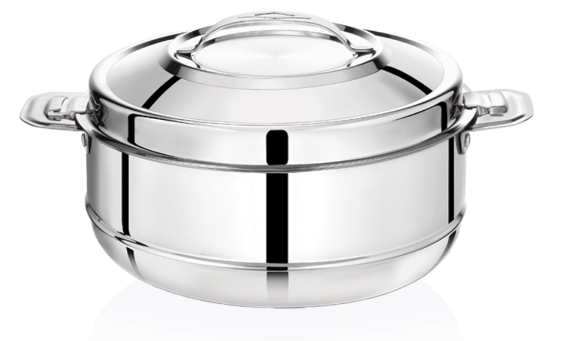 பிரீமியர் எலைட் பரிமாறும் கிண்ணத்தில் இரட்டை சுவர் கொண்ட துருப்பிடிக்காத எஃகு உள்ளது, இது உணவை புதியதாகவும் நீண்ட நேரம் சூடாகவோ அல்லது குளிராகவோ வைத்திருக்க உதவுகிறது. உட்புற மற்றும் வெளிப்புற சுவர்கள் இரண்டும் துருப்பிடிக்காத எஃகு பொருட்களால் ஆனவை. பிரீமியர் பரிமாறும் கிண்ணம் எளிதான பூட்டுதல் அமைப்புடன் வருகிறது, இது மூடியை வெறுமனே திருப்ப வேண்டும். இந்த பூட்டுதல் அமைப்பு உங்கள் உணவைப் பாதுகாக்கும் மற்றும் உணவின் வெப்பநிலையைத் தக்கவைக்கும். உறுதியான கைப்பிடி பரிமாறும் கிண்ணத்தை மேசையைச் சுற்றி எளிதாக நகர்த்த உதவுகிறது. பணிச்சூழலியல் மேல் கைப்பிடி பரிமாறும் கிண்ணத்தை எளிதாகத் திறக்க உதவுகிறது.
