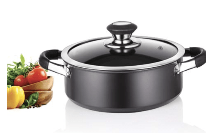 பிரீமியர் ஹார்ட் அனோடைஸ்டு ட்ரெண்டி பிளாக் கேசரோல் குக் & சர்வ் கண்ணாடி மூடியுடன் 20 செ.மீ குறியீடு-109040