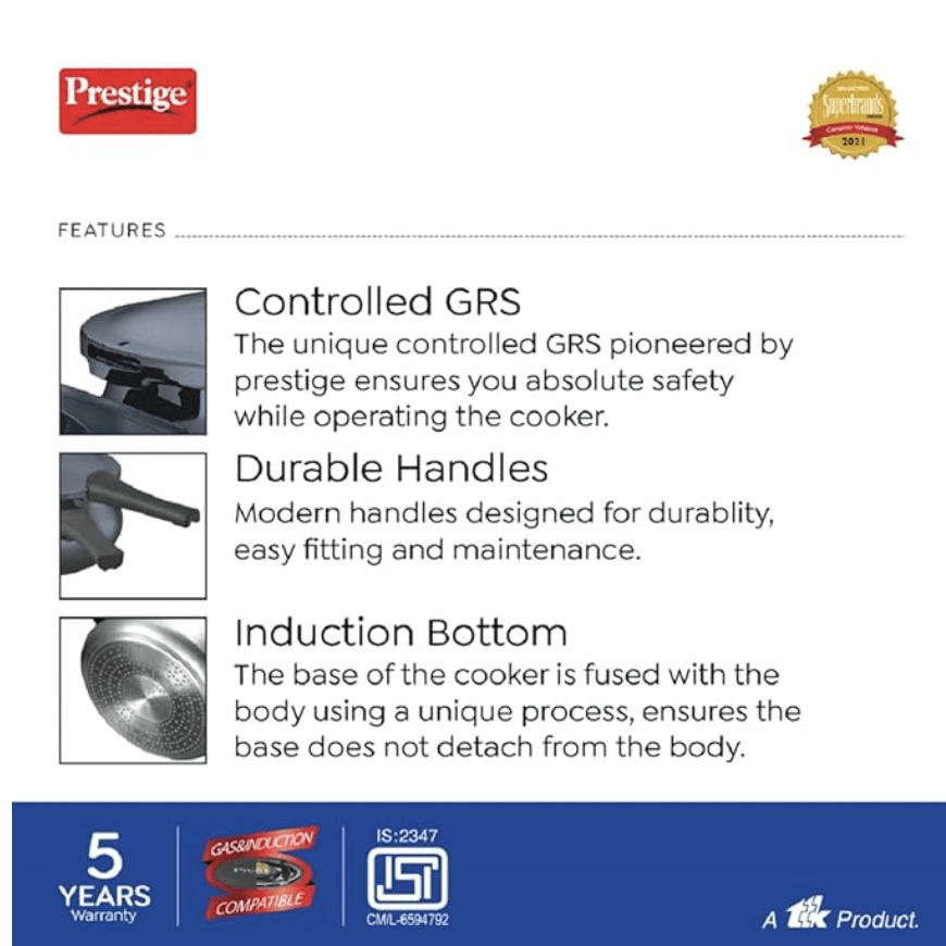 பிரெஸ்டீஜ் டீலக்ஸ் பிளஸ் ஹார்ட் அனோடைஸ்டு அலுமினியம் அவுட்டர் லிட் பிரஷர் குக்கர் ஹேண்டி, 3 லிட்டர், கருப்பு, 3 லிட்டர்