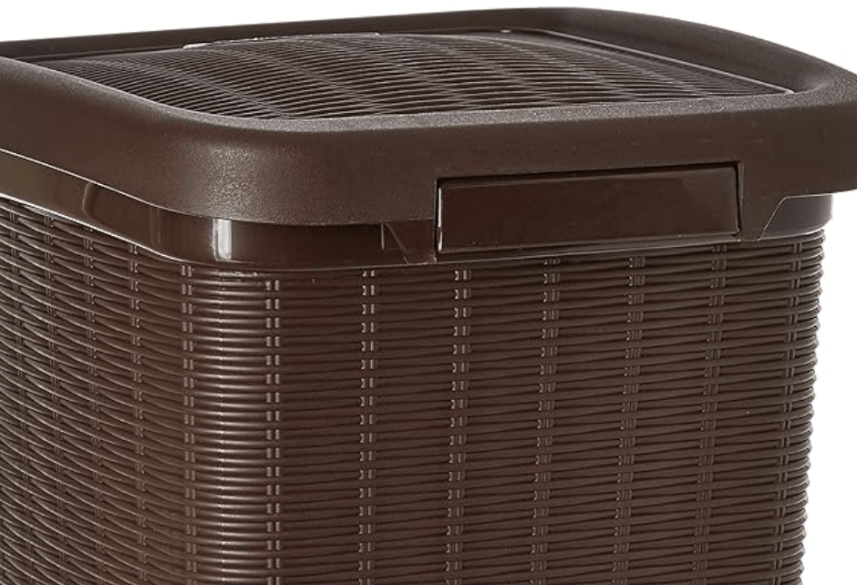 - சுத்தம் செய்வதற்காக கூடையின் உள்ளே இருந்து வெளியே இழுக்க அழகாக வடிவமைக்கப்பட்ட கைப்பிடி, இலகுரக, தூக்க எளிதான கைப்பிடி, திறந்த வகை குப்பைத் தொட்டியை நீங்கள் விரும்பும் போது மூடி ஆதரவாக கைப்பிடி செயல்படுகிறது.