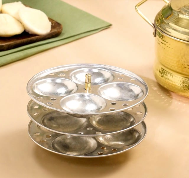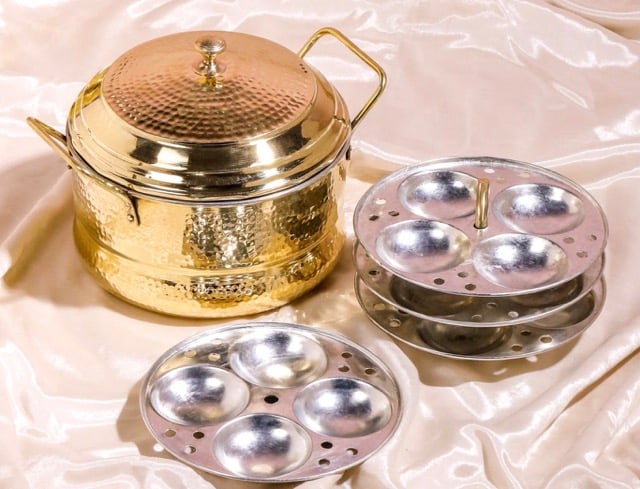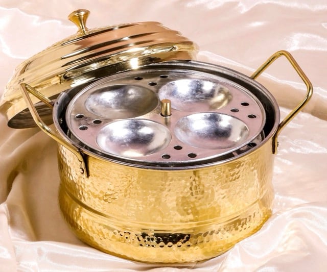 உள்ளடக்கியவை: 1 பித்தளை குக்கர், 3 இட்லி தட்டுகள் (பல குழிகள்)