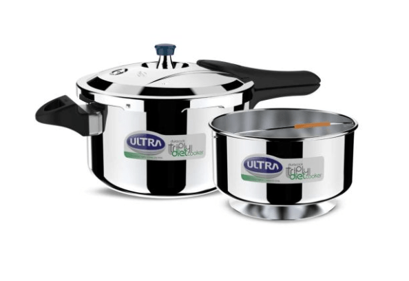 5.5 லிட்டர் அல்ட்ரா டயட் குக்கர் சந்தையில் முதன்முதலில் அறிமுகப்படுத்தப்பட்டது, இது நவீன தொழில்நுட்பத்தில் ஆரோக்கியமான, வழக்கமான சமையலை ஏற்றுக்கொள்வதில் முன்னோடியாக உள்ளது. இது சமைத்த பிறகு அரிசியிலிருந்து திரவ மாவுச்சத்தை அகற்றும் ஸ்டார்ச் நீக்கியுடன் வருகிறது, இது அரிசியை கொதிக்க வைத்து சமைக்கும் போது செய்யப்படும் பாரம்பரிய ஸ்டார்ச் தண்ணீரை வடிகட்டும் நடைமுறையைப் பின்பற்றுகிறது. இது வேகமான மற்றும் சீரான சமையலுக்கு அதிக தாக்கத்தை ஏற்படுத்தும் பிணைக்கப்பட்ட 3 அடுக்கு கூட்டு அடித்தளம், துருப்பிடிக்காத AISI 304 உணவு தர ஸ்டெயின்லெஸ் ஸ்டீல் உடல் மற்றும் இரட்டை திருகுகள் கொண்ட பேக்கலைட் கைப்பிடிகள் ஆகியவற்றைக் கொண்டுள்ளது, இது ஒரு நீடித்த பாத்திரத்தில் ஆரோக்கியமான உணவும் தயாரிக்கப்படுவதை உறுதி செய்கிறது.