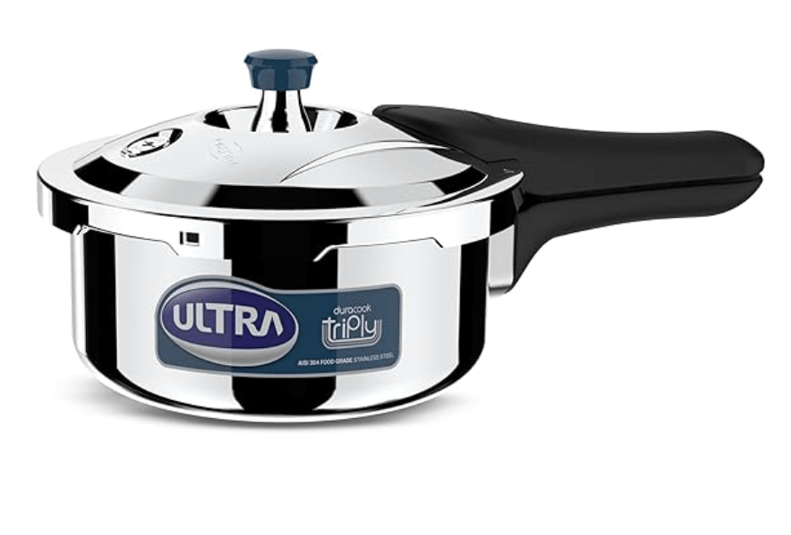 அல்ட்ரா டூராகூக் டிரிபிள் 2 எல் பிரஷர் குக்கர், எஸ்எஸ் 304 ஃபுட் கிரேடு, 'எஸ்சிடிஎஸ்' ஆன்டி-பல்ஜிங், ஃப்ரோத் கலெக்டர், பிராட் பேஸ் விரைவு சமையல் - எரிவாயுவை சேமிக்கிறது. சாலிட் பேக்லைட் ஹேண்டில்கள், 3 லேயர்டு பாடி, இண்டக்ஷன், ஐஎஸ்ஐ, 5 ஒய் உத்தரவாதம்.