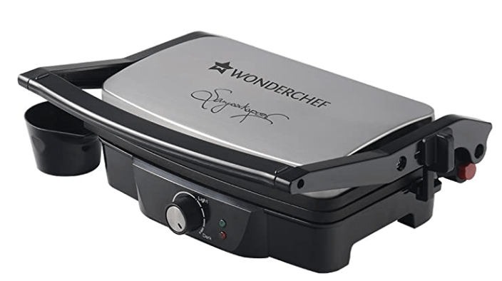 வொண்டர்செஃப் சஞ்சீவ் கபூர் தந்தூர் எலக்ட்ரிக் கிரில்லர் டோஸ்டர் சாண்ட்விச் மேக்கர் 3 இன் 1 அப்ளையன்ஸ் 1500 வாட் 180 டிகிரி கிரில்லிங் அதிகப்படியான எண்ணெய் நெகிழ்வு கீல்களை அகற்ற சரிசெய்யக்கூடிய சாய்வு பல அடுக்கு மணலுக்கானது