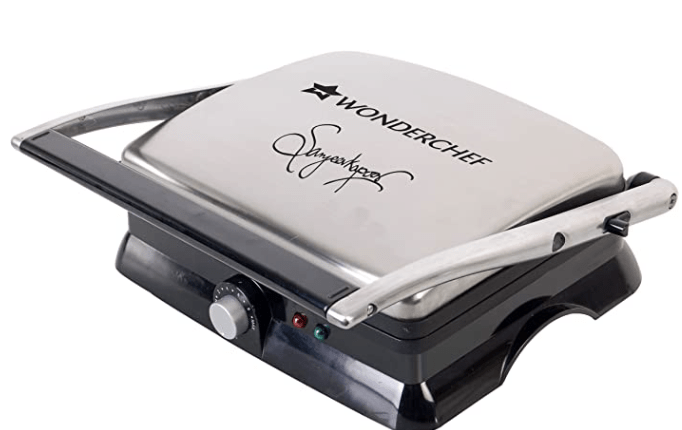 வொண்டர்செஃப் சஞ்சீவ் கபூர் தந்தூர் குடும்ப அளவு எலக்ட்ரிக் கிரில்லர் டோஸ்டர் சாண்ட்விச் மேக்கர் 3 இன் 1 அப்ளையன்ஸ் 1600 வாட் 180 டிகிரி கிரில்லிங், அதிகப்படியான ஆயில்ஃப்ளெக்ஸி கீல்களை அகற்ற சரிசெய்யக்கூடிய சாய்வு, பலவற்றிற்கானது